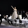 Blutig im Gesicht schreitet Senta langsam mit einem großen Bild des Holländers in den Armen aus der Kulisse heraus. Als die Ouvertüre einsetzt, beginnt im Hintergrund das Meer zu toben, riesige Wellen brechen gegen das Ufer, am verdunkelten Himmel blitzt es. Ein Tanzensemble schwingt weiße Schleier, offenbar die Wellen symbolisierend, wild herum. Doch so spektakulär der szenische Beginn von Richard Wagners „Der fliegende Holländer“ am Teatro Verdi in Triest ist – die Oper hat auch sonst optisch beeindruckende Bilder zu bieten –, so schnell verflacht die Inszenierung von Hennig Brockhaus (gemeinsam mit Ciancarlo Colis auch für die Ausstattung mit stilisierten Kostümen verantwortlich). Wie schon zu Beginn setzt der Regisseur hauptsächlich auf Projektionen, darunter mit Großaufnahmen vom Holländer und Senta.