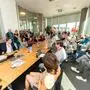 „Ich habe noch nie so viele Menschen im Skyroom gesehen“, zeigte sich Hubert Patterer überwältigt, als er die Bühne über den Dächern von Graz betrat. Der Skyroom ist der höchstgelegene Raum im Styria Media Center, in dem die Kleine Zeitung beheimatet ist und hierher lud der Chefredakteur zum Austausch mit Leserinnen und Lesern. Der Andrang war enorm und genauso sollte es sein, stand der 120. Geburtstag ja ganz im Zeichen des Dialogs: „Die Zeitung, die gehört euch Lesern“, stellte der Chefredakteur die Besitzverhältnisse umgehend klar – denn die Kleine Zeitung, die sei mehr als ein Produkt, die innige Beziehung zwischen Lesern und Zeitung drücke sich auch im Slogan „Meine“ aus.