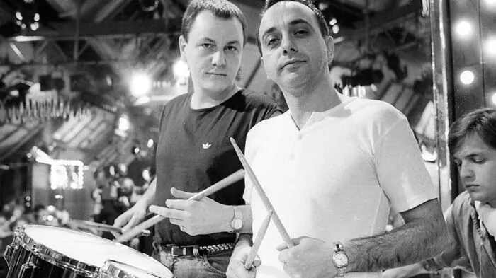 Franz Trojan (links) mit "Trio"-Drummer Peter Behrens im Januar 1984