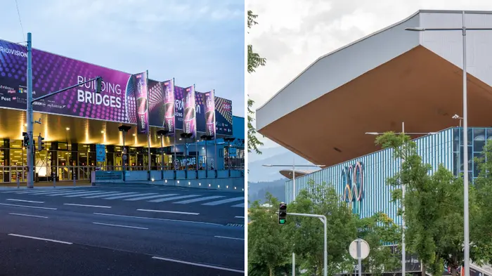 Mögliche Song-Contest-Locations: Wiener Stadthalle und Olympiastadion Innsbruck | Die Stadthalle Wien (links) oder die Olympiaworld Innsbruck (rechts) - wo wird der ESC 2026 stattfinden?