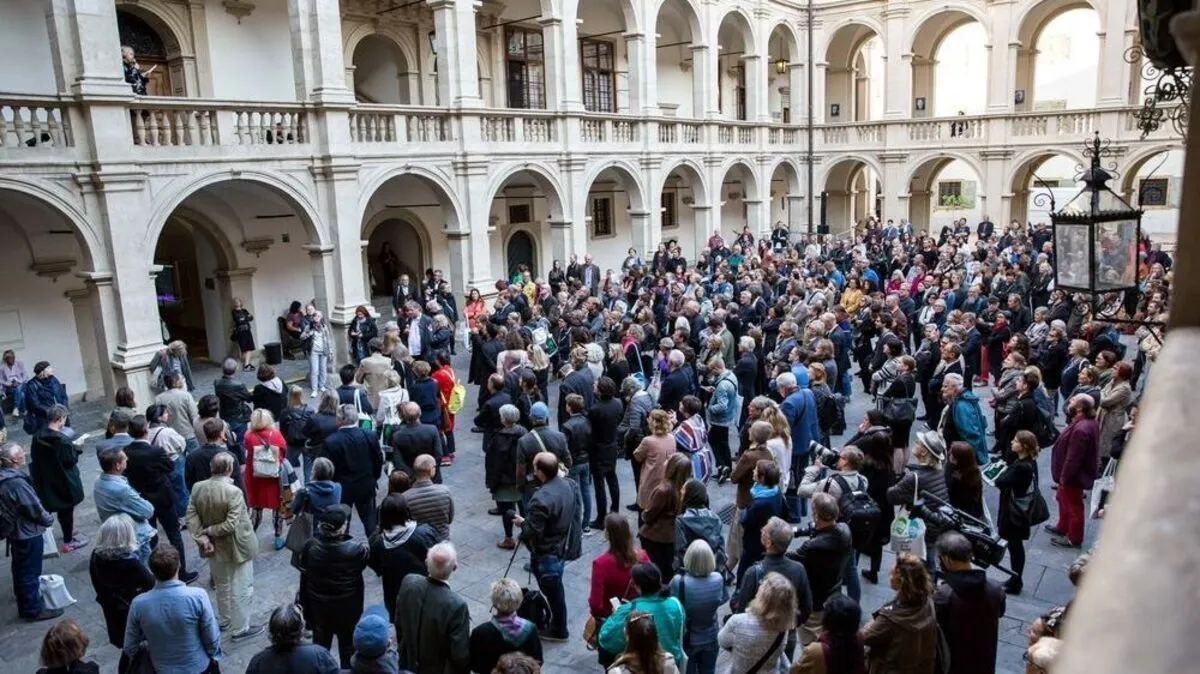 Man lauschte der Eröffnungsrede im Landhaushof