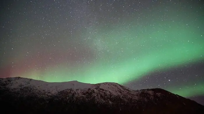 Creative Highlights World Spectacular green and pink Northern Lights in Tromso Copyright: xMariannaxJaszczukx