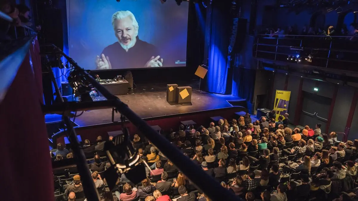 2018: Julian Aassange eröffnete das Festival via Livestream im Orpheum