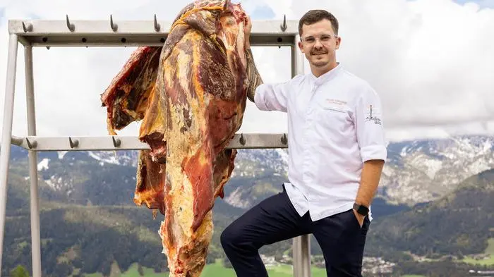 „Mehr Geschmack bekommt man jedoch bei alten Kühen“, erklärt Dennis Katholnig vom Natur- und Wellnesshotel Höflehner in Haus im Ennstal. Neben Wildgerichten aus dem hauseigenen Gehege werden im eigenen Schlachtraum auch Delikatessen wie alte Kuh verarbeitet und gereift. „Je älter das Tier, desto länger haben die Aromen im Fleisch Zeit, sich zu entfalten“, erklärt der experimentierfreudige Küchenchef.