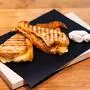 Während wir reden, wird hinten schon gewerkelt. Sebastian, einer seiner Mitarbeiter, hat nämlich ein Experiment gestartet: das Bergkäse-Kimchi-Brot. Klingt nach Küchenparty mit Ansage – und schmeckt auch so. Dünne Scheiben vom Käse, ordentlich Kimchi drauf, alles zwischen zwei Scheiben Brot von der Bäckerei Wienerroither, mit Butterschmalz ab in den Kontaktgrill. „Das hat ja heute eh jeder daheim“, meint der gelernte Koch trocken.