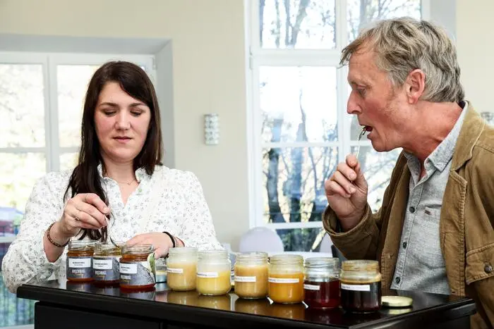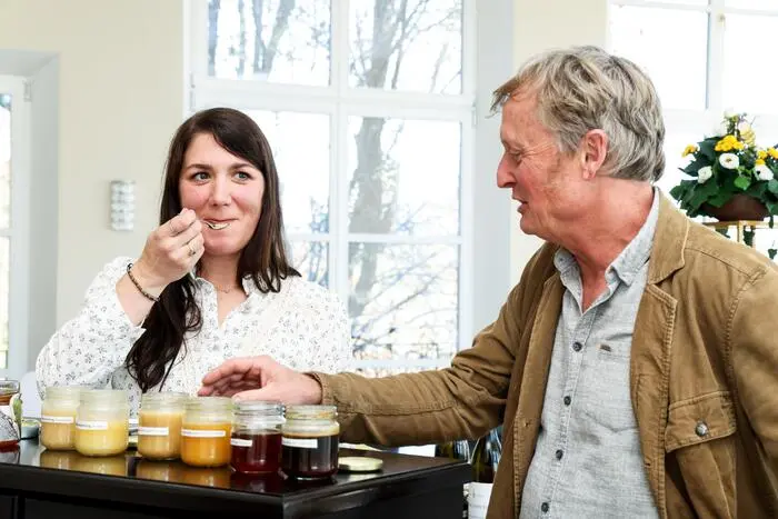 Victoria Sturm und Johannes Gruber verkosten Honig