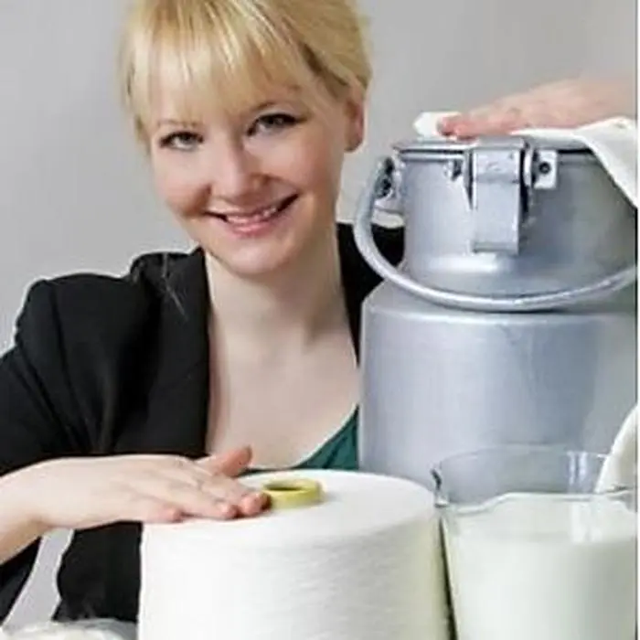 Die Mikrobiologin und Designerin Anke Domaske aus Hannover schöpft eine Stofffaser aus Kasein, dem Hauptbestandteil der Milch, und entwirft damit stylische Kleidungsstücke. Der Stoff fühlt sich ähnlich soft und fließend an wie Seide, ist aber weitaus günstiger und obendrein nachhaltig. Statt Trinkmilch verwendet Anke Domaske Rohmilch-Abfälle, denn Kasein wird ohnehin aus saurer Milch extrahiert. Außerdem ist Qmilk umweltschonend und unbedenklich für die Gesundheit, denn die Produktion der Milchfaser kommt ohne zusätzliche Chemikalien aus. Seit 2014 wird Qmilk industriell produziert und Gerüchten zufolge herrscht eine hohe Nachfrage in der Mode-, aber auch Auto- und Möbelindustrie.