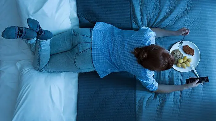 Wissenschaftler aus den USA untersuchten, ob es die Nahrungsaufnahme beeinflusst, wenn Menschen während des Essens Medien wie den Fernseher, Online-Videos oder z. B. Hörbücher nutzen. Sie zeigten, dass dies durchaus der Fall war: Menschen konsumierten bei gleichzeitiger Mediennutzung durchschnittlich 149 Kalorien mehr. Da die Menschen dieses Mehr an Kalorien bei darauffolgenden Mahlzeiten nicht kompensierten, könnte dies langfristig Übergewicht begünstigen, berichtet das deutsche Gesundheitsportal.