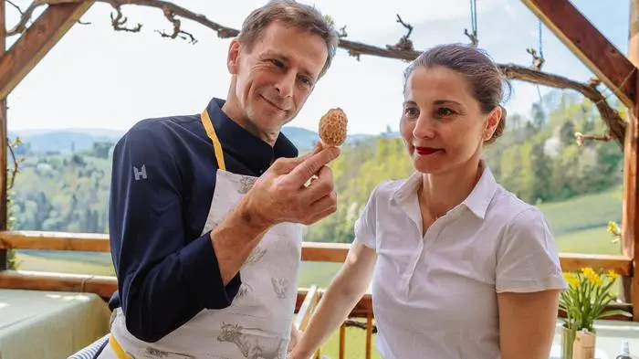 Genau dort haben meine Eltern die Morcheln für das heute vorgestellte Gericht gefunden. Da nämlich auch Joachim Gradwohl mit seiner Partner Lilli Kollar vom Restaurant „Lilli & Jojo“ bei der Suche nicht fündig wurden, konnten wir glücklicherweise quasi in letzter Minute auf tolle Morcheln aus dem Familienfund zurückgreifen. Und der „Gault&Millau“-Koch des Jahres 2007 zeigte sich ob des beachtlichen Fundes mehr als begeistert. Denn: „Wenn sie da sind, sind sie eigentlich auch schon wieder weg“, lacht der erfahrene Koch. Zusammen mit seiner Lebensgefährtin verwöhnt er seit knapp vier Jahren begeisterte Gäste im Wirtshaus an der südsteirischen Weinstraße.