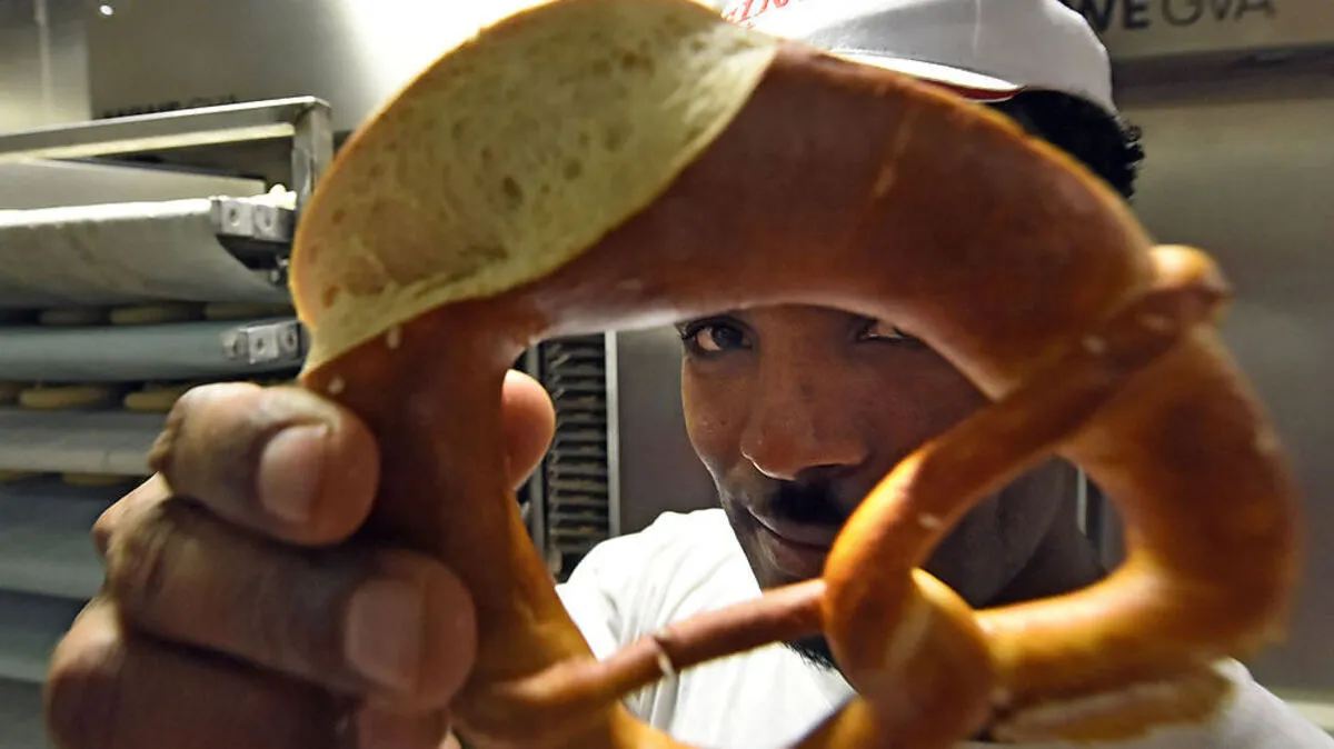 Bunt, Instagram-tauglich und essbar: Nachdem Rainbow-Bagels in New York zum Food-Trend wurden, bietet ein Koch nun auch die traditionelle Brezel in Regenbogenfarben an.