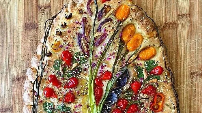 Bunt und essbar: Gartenbilder aus Gemüse auf duftender Focaccia