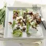 Für das Dressing alle Zutaten vermischen und mit Salz und Pfeffer abschmecken. Die Kräuter damit abschmecken.