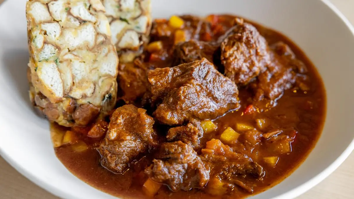- 250 g Gulaschfleisch von einer alten Kuh (am besten den Metzger fragen)