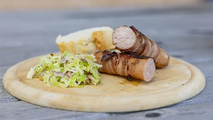 Die Berner Würstel werden auf dem Grill oder in der Pfanne zubereitet. Der Speck wird knusprig und der Käse schmilzt.