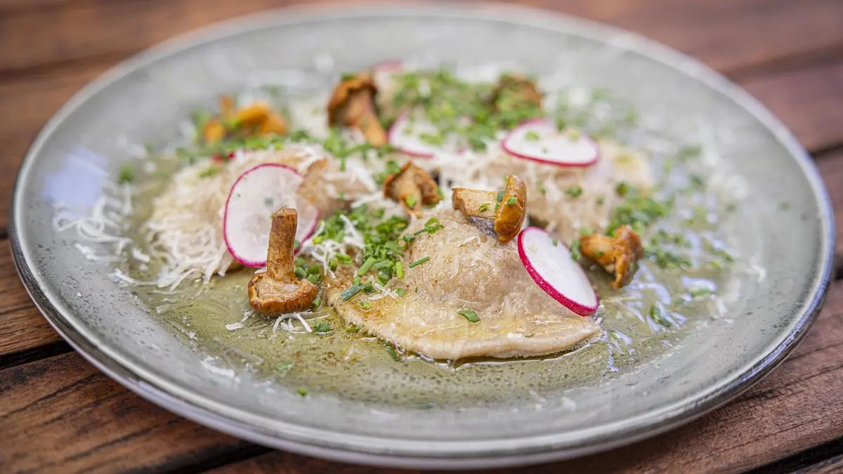 Als Topping Parmesan, braune Butter, Radieschenscheiben, Schnittlauch und einen Hauch Zitronenzesten drüber raspeln.
