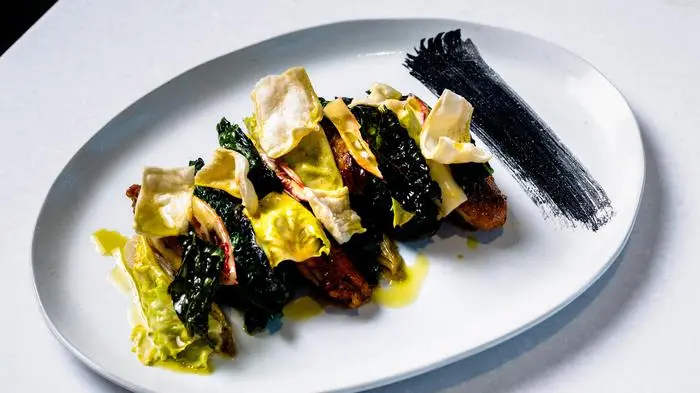 Topping: Irka und Schmuck servieren die Hühnerflügel auf einer Art Caesar Salad und garnieren alles mit Parmesanchips. Kann man machen, muss man aber nicht.