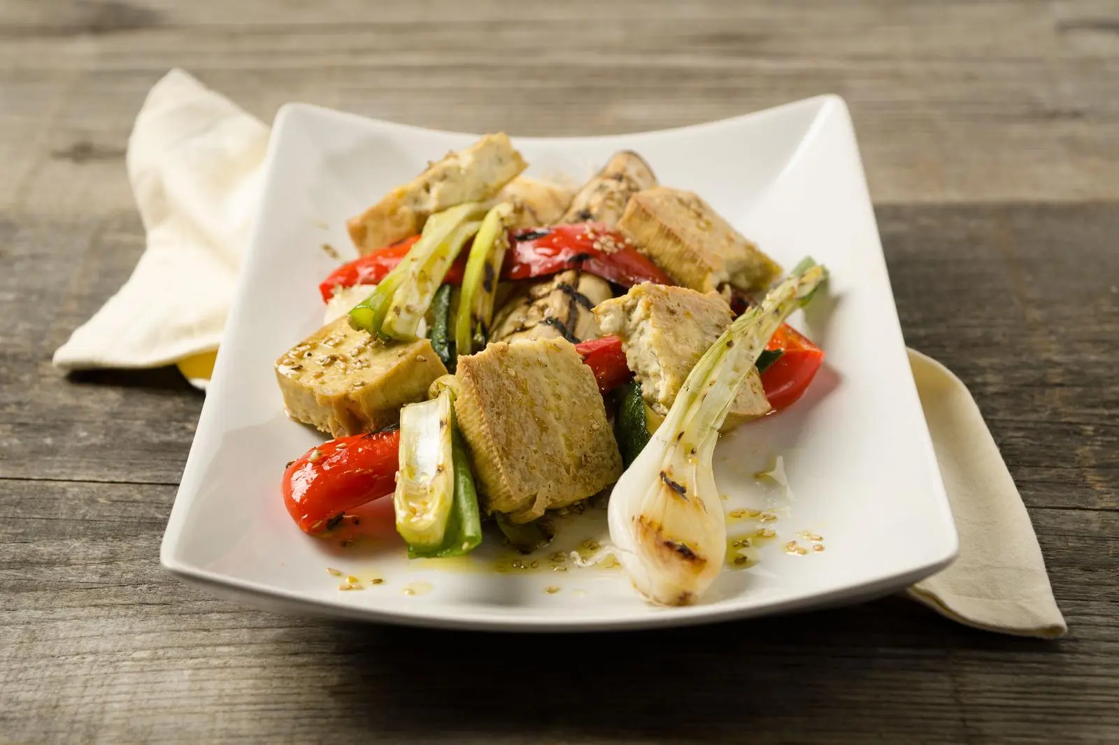 Das Gemüse mit etwas Olivenöl bepinseln und am Grill oder in der Pfanne von allen Seiten braten, bis es weich ist. Danach mit dem Dressing vermischen und kurz ziehen lassen.