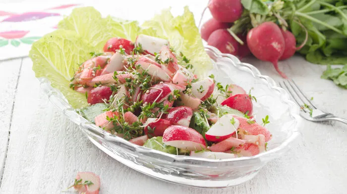Salat mit Rhabarber, Avocado und Radieschen