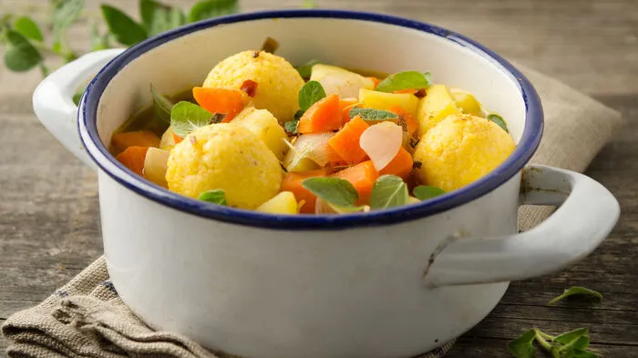 Wahrlich ein Klassiker für die kalte Jahreszeit und perfekt für alle, die sich nach einem langen Tag aufwärmen wollen: Der Kartoffel-Eintopf. Heute einmal mit Grießbällchen.