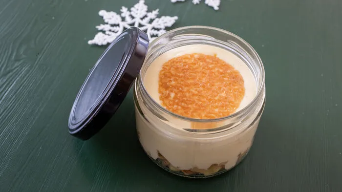 „Bratapfel“ im Glas, besoffene Rosinen, Haselnüsse & Vanilleschaum