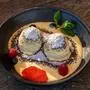 Doch nicht so, wie man ihn kennt. „Da wir auf ein Slow-Food-Konzept setzen, ist bei unseren kreativen Überlegungen die Idee zum ,Möchtegern Germknödel‘ aufgepoppt. Das sind Mini-Germknödel. Allerdings ohne Germ, dafür mit einer Topfenmasse“, erklärt Hüttenchefin Julia. Diese Fake-Germknödel sind herrlich locker und flaumig und dabei das Wichtigste: einfach zuzubereiten. In der Eve Alps serviert man sie mit einer Vanillesoße mit echter Bourbonvanille und einem Schuss Rum. Damit nicht sparen und auch viel Mohn-Zucker verwenden, wie beim echten Germknödel. Ein bisschen Erdbeersoße, als Dekoration eine Himbeere: Fertig ist der Möchtegermknödel.