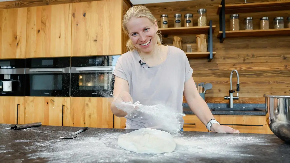 Genau dort treffen wir die umtriebige Bäuerin und während sie die Zutaten herrichtet, sprudelt sie gleich darauf los: „Das Rezept zur Knopfsemmel ist etwas ganz Besonderes für mich, denn es begleitet mich, seit es meinen Blog gibt. Es ist mehr oder weniger der Grund dafür, dass ich überhaupt begonnen habe, Backkurse zu geben und meinen Blog zu schreiben!“ Wie das Formen der Semmel im Detail funktioniert, können Sie ganz einfach anhand der Schritt-für-Schritt-Anleitung auf dieser Seite nachlesen.