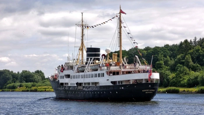 Das ehemalige Hurtigruten-Schiff „Nordstjernen“ fährt fast im Originalzustand von 1956. Wie es sich auf einem maritimen Oldtimer durch die Ostsee reist.
