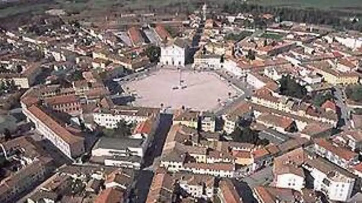 Von oben zeigt sich die Besonderheit Palmanovas. Die norditalienische Stadt hat einen Grundriss in der Form eines neunzackigen Sternes.