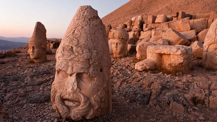 Ehrfurcht kommt auf. Schließlich steht man auf stolzen 2150 Metern Seehöhe und blickt gut 2000 Jahre alten, mannshohen Köpfen, die direkt aus dem Boden sprießen, ins steinerne Antlitz. Dazugehörige kolossale Steinkörper in Sitzhaltung, die einst bis zu neun Meter hoch gewesen sein sollen, posieren etwas fernab von ihnen. Die Szenerie des Bergs Nemrut, einer der Höhepunkte der 19 Unesco-Welterbestätten der Türkei im Südosten Anatoliens, mutet fast skurril an, die Augenweide rundum überwältigt.