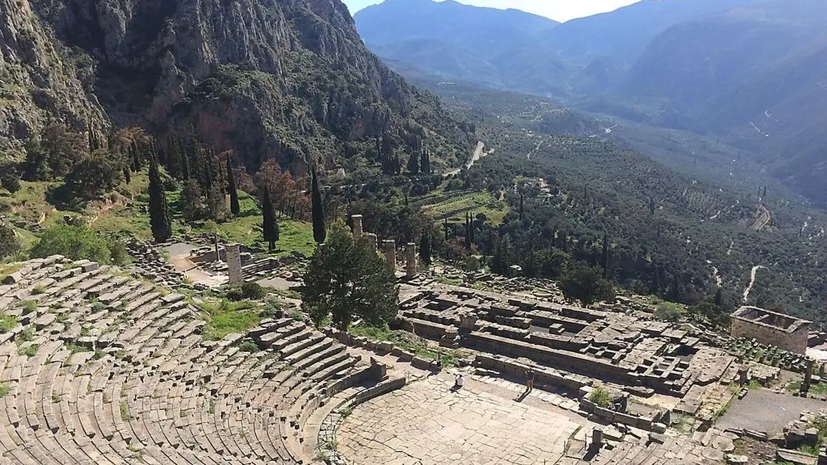 Im Altertum galt Delphi, rund zwei Autostunden von Athen entfernt, als Zentrum der Welt. Laut dem Mythos ließ Göttervater Zeus an den beiden Enden des Erdkreises zwei Adler aufsteigen, die sich in der Mitte trafen und dort den "omphalos" zu Boden fallen ließen. Eine antike Nachbildung des "Nabels der Welt" befindet sich heute am Ausgrabungsgelände, seit 1987 Teil des UNESCO-Weltkulturerbes.