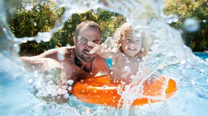 Der Sprung ins kühle Nass! Strahlender Sonnenschein, tiefblauer Himmel ... was gibt es an heißen Sommertagen Schöneres, als sich im kühlen Nass so richtig auszutoben? Anzeige