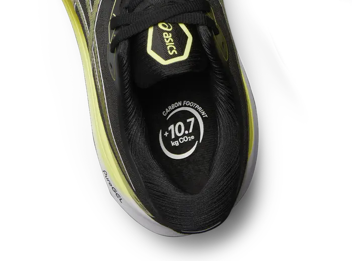 All diese Bemühungen und Entwicklungen sollen zu einer grüneren Gesamtbilanz führen. Denn im Schnitt erzeugt ein Paar Laufschuhe laut dem Massachusetts Institute of Technology (MIT) 14 Kilo CO2-Emissionen. Bei Allbirds unterläuft man diesen Wert bei einem zusammen mit Adidas entwickelten Schuh mit 2,94 Kilo signifikant. Auch Asics liegt bei der aktuellen Variante des Kultmodells „Kayano“ deutlich unter dem Branchenmedian. Die material- und herstellungsbedingten Kohlenstoffemissionen werden mit jeweils 4,7 Kilo CO2 pro Paar angegeben, dazu kommen noch Transport und Entsorgung – macht in Summe einen CO2-Fußabdruck von 10,7 Kilo über die gesamte Wertschöpfungskette.