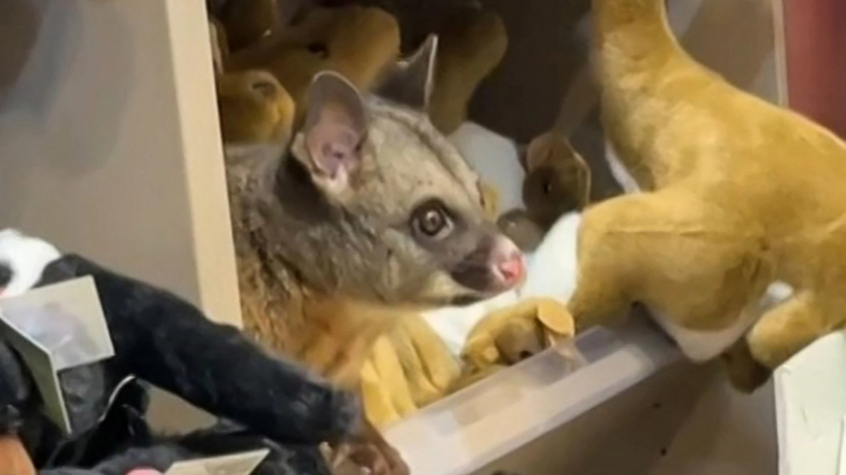 Possum versteckte sich in Shop zwischen Plüschtieren
