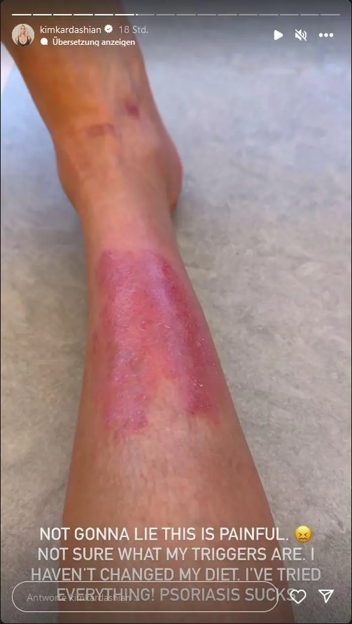 Kim Kardashian (43) postete auf ihrem Instagram-Kanal eine Reihe von Fotos, die starke Rötungen an ihren Beinen zeigen. Sie leidet seit einigen Jahren an Schuppenflechte (Psoriasis), eine Krankheit, bei der sich die Haut immer wieder entzündet und schuppt. Mittlerweile geht der Realitystar offen damit um. „Ich werde nicht lügen, das ist schmerzhaft. Ich weiß nicht, was meine Auslöser sind. Ich habe meine Ernährung nicht umgestellt. Ich habe alles versucht!“, schreibt sie zu einem der Fotos dazu. Die Unternehmerin machte ihre Krankheit 2019 erstmals öffentlich, als sie auf ihrem Instagram-Kanal ein Selfie mit ihrer Schuppenflechte postete.