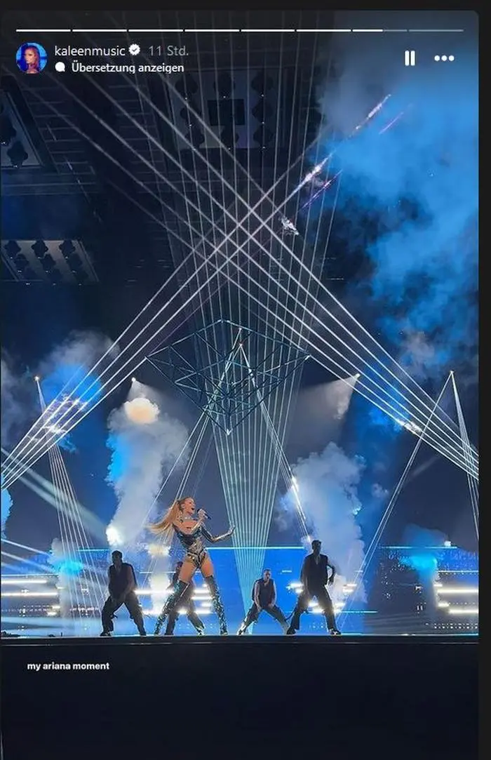 Die 29-Jährige scheint die Auftritte auf der Bühne voll und ganz zu genießen. „Mein Ariana Moment“, schreibt sie unter ein Foto auf Instagram, bei dem sie in einem „Ariana Grande“-Gedächtnisoutfit zu sehen ist. Sie hat sich für einen hohen Zopf und einen silbernen Body mit Glitzer und Lederdetails entschieden. Kombiniert wird das auffällige Kostüm mit Overknee-Stiefeln in Silber-Optik.