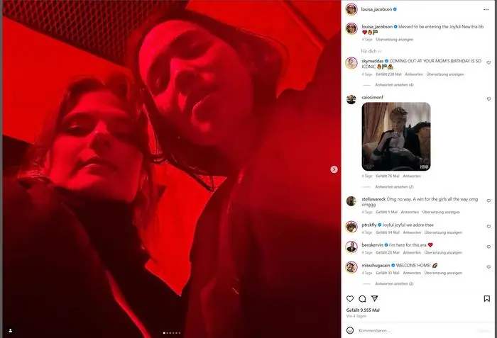 Meryl Streeps jüngste Tochter Louisa Jacobson Gummer (33) feierte ihr Coming-out auf Instagram. Gleichzeitig stellt sie ihre Partnerin vor: die Produzentin Anna Blundell. Ihr Selfie veröffentlichte die Schauspielerin an einem besonderen Tag: dem 75. Geburtstag ihrer Mutter (22. Juni). Gleichzeitig fällt es in den sogenannten Pride-Monat Juni. Gummer teilte ein Selfie mit ihrer Freundin, Produzentin Anna Blundell. „Gesegnet, die freudvolle neue Ära zu betreten“, schrieb sie darunter. Auf dem Schnappschuss steht das Paar in einem rot ausgeleuchtetem Raum und blickt von oben in die Kamera.