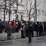 Zahlreiche Menschen versammelten sich vor dem Gerichtsgebäude; die Polizei sicherte es ab