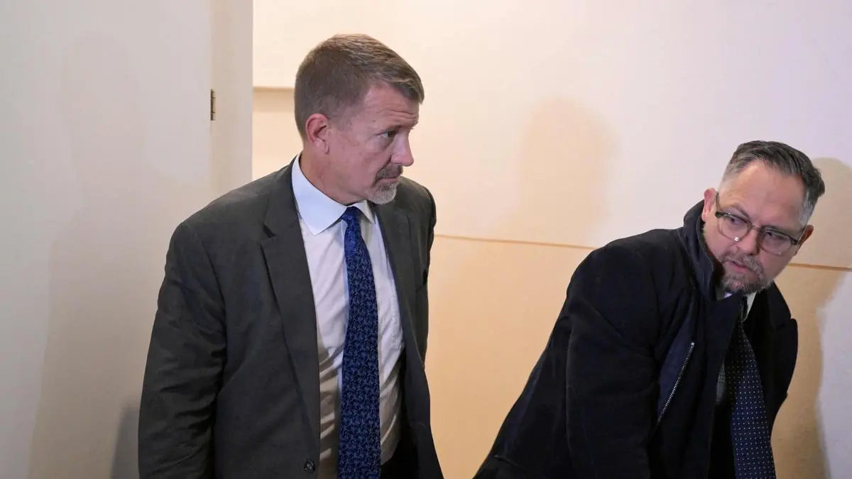 Prozessbeginn in Wiener Neustadt | Erik Prince (links) auf dem Weg in den Gerichtssaal