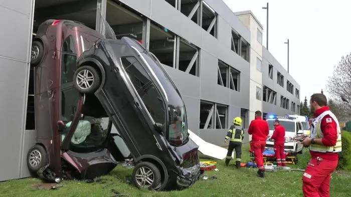 Zwei Autos stürzten aus Parkhaus des Landesklinikums Baden