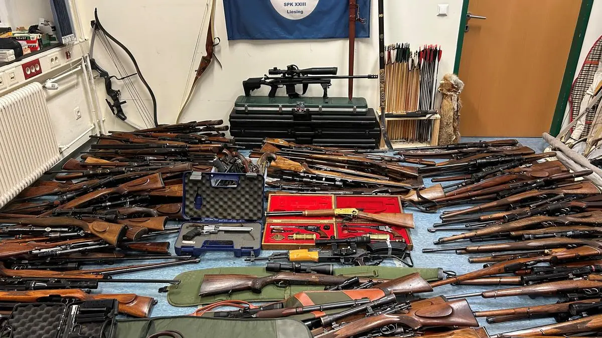 Bei einem 85-Jährigen in Wien-Liesing sind am Mittwochnachmittag mehr als 200 Schusswaffen gefunden worden.