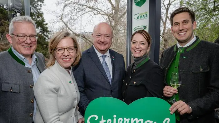 Wenn am Wiener Rathausplatz die grünen Herzen regieren, dann ist wieder Steiermark-Frühling. Gefühlt halb Graz versammelte sich in den ersten Tagen im Zentrum der Bundeshauptstadt. Und während sich tausende Besucher am Vorplatz durch ein Meer von regionalen Köstlichkeiten durchkosteten, kamen Österreichs Spitzen der Politik zum Empfang der Kleinen Zeitung am Rande des Steiermark-Frühlings.