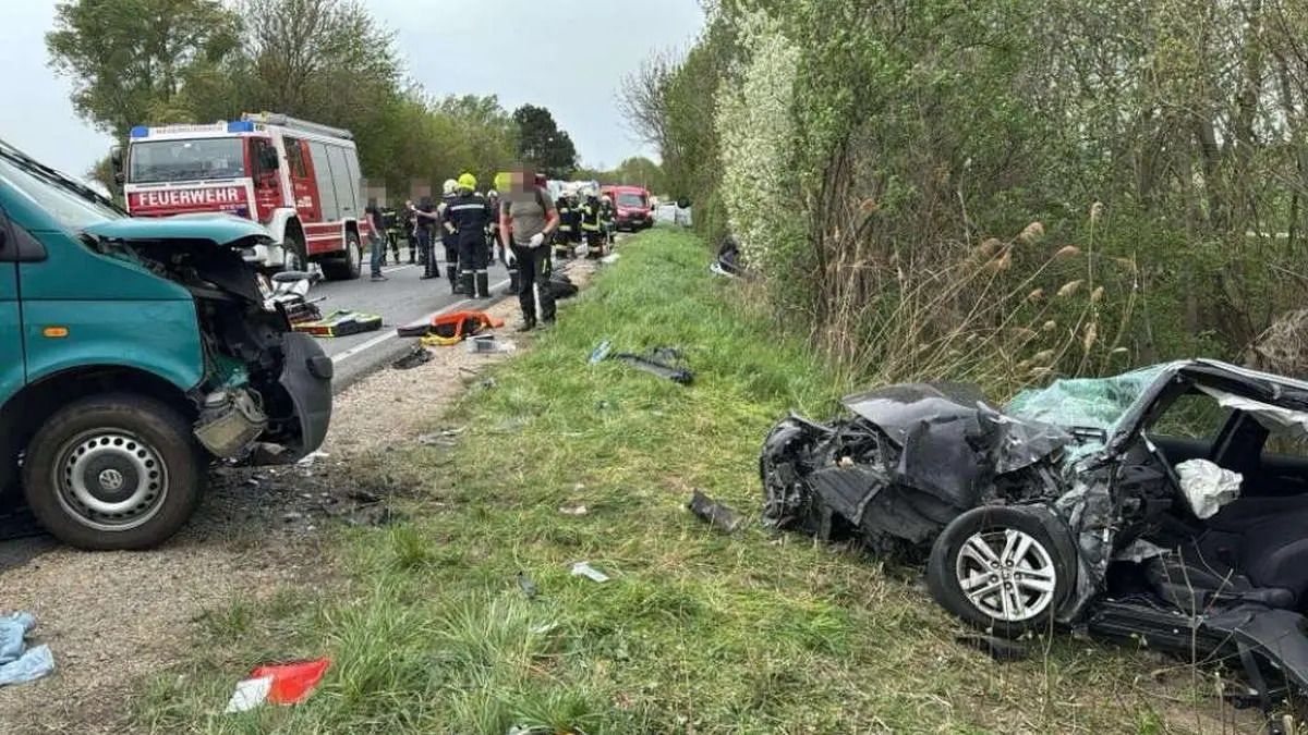 Bei einem Verkehrsunfall auf der Horner Straße nahe Zissersdorf in der Marktgemeinde Hausleiten im Bezirk Korneuburg sind am frühen Donnerstagnachmittag nach Angaben von Notruf NÖ und dem Roten Kreuz zwölf Menschen verletzt worden, zwei von ihnen schwer. Vier Kinder kamen mit leichten Blessuren davon. In die Karambolage waren ein Kleinbus und drei Pkw verwickelt. Ein Großaufgebot an Rettungsteams rückte aus.