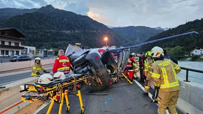 Das Eisengeländer bohrte sich durch das gesamte Auto. Der Lenker wurde aus dem Wrack geborgen.  - FOTO: APA/BFV LANDECK/SCHRANZ SIMON