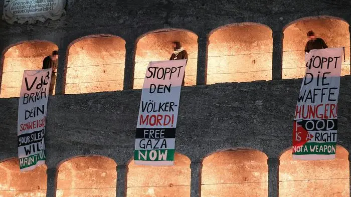 Die Protestaktion gegen den Gaza-Krieg bei der Eröffnung der Salzburger Festspiele am vergangenen Samstag hat viele Fragen nach der Sicherheit des Festivals aufgeworfen. Wie die Polizei am Dienstag informierte, dürften die sechs Aktivistinnen und Aktivisten über Helfer mit Insiderwissen verfügt haben. Eine noch unbekannte Person soll ihnen eine gesicherte Zugangstüre von innen geöffnet haben. Dann wurden sie von einer Ex-Mitarbeiterin durch das verwinkelte Gebäude geleitet.