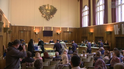 Kleine Zeitung mit weißer Schrift auf rotem Hintergrund.