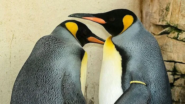 Bisher hat sich das Königspinguin-Küken in den Bauchfalten seiner Eltern versteckt.