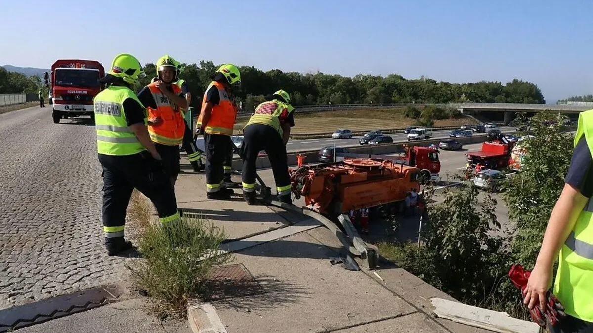 Schwerer Verkehrsunfall im Bezirk Mödling: Ein Pkw-Lenker stürzte mit seinem Fahrzeug über eine Brücke über die Südautobahn auf eine Wiese neben dem Pannenstreifen der A2.