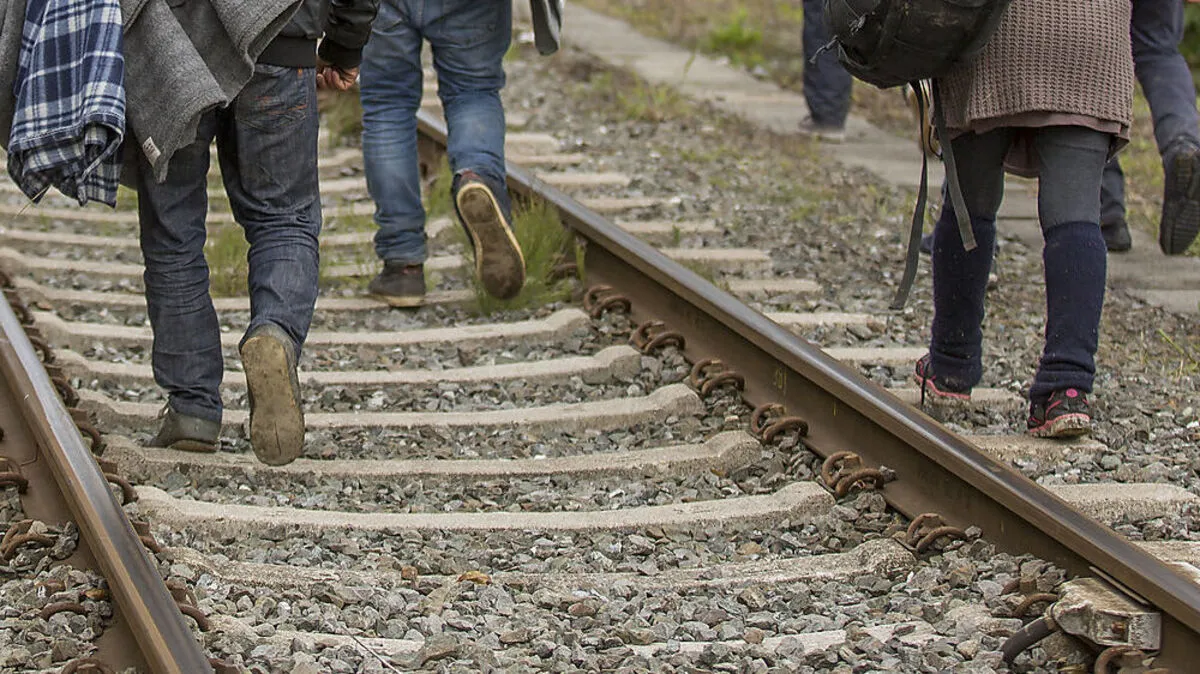 Flüchtlinge blockierten Bahnstrecke beim Flughafen Wien