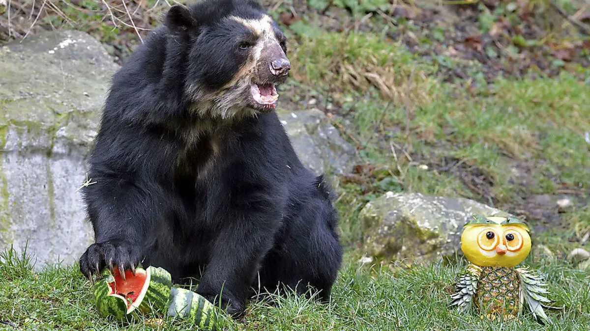Brillenbär Juan im Tiergarten Schönbrunn wird morgen 25 Jahre alt. Bereits vorab wurde er mit speziellen Leckerbissen beschenkt.