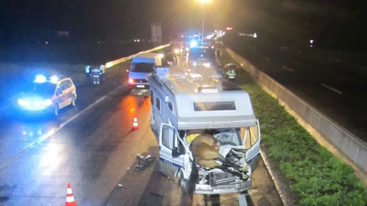Wohnmobil fuhr auf Autobahn in Pferde